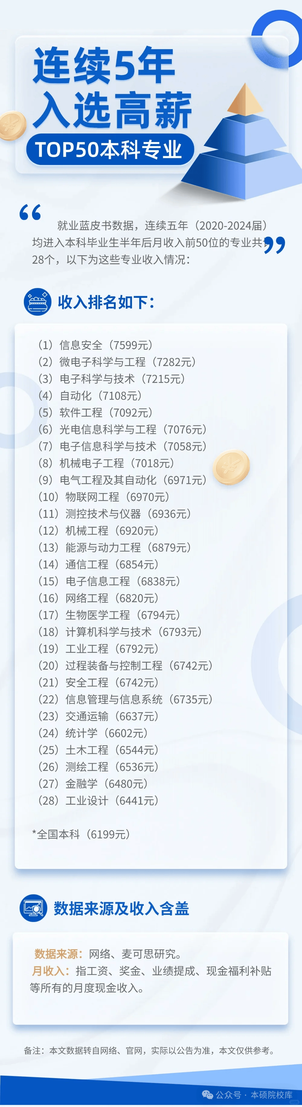 比来麦可思研究发布的就业蓝皮书,给了大师一个 “稳准狠” 的参考:2020-2024 届本科结业生中,有 28 个专业持续五年跻身半年后月收入前 50 位!最低月薪都比全国本科平均(6199 元)高 242 元,最高的间接冲到 7599 元,这波 “长红专业” 实的抗打!不管你是正正在填意愿的高三党、纠结转专业的大学生,仍是替娃费心的家长,这份榜单都值得珍藏 —— 终究能持续五年高薪,申明行业需求稳、手艺壁垒高,不是转眼即逝的风口。