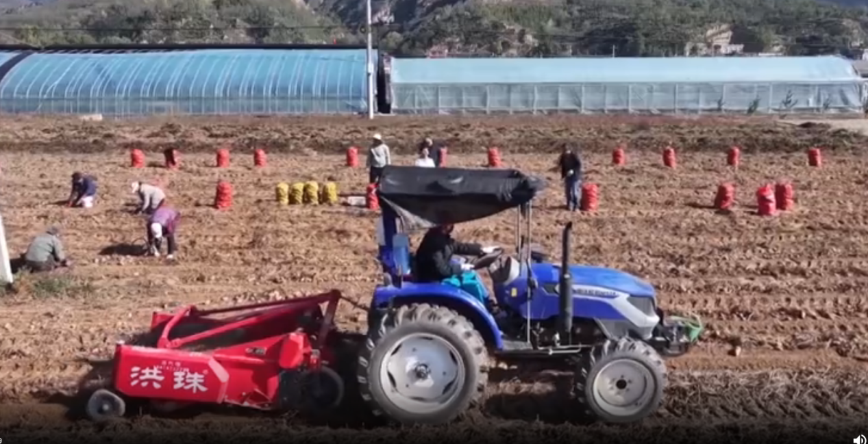 田埂上,拆满马铃薯的编织袋堆得像小山,拖沓机往来穿越,将这些“金蛋蛋”运往仓库。“种了一辈子地,从没见过这么好的收获!”年过六旬的老把式张大爷拍着丰满的马铃薯感伤到。